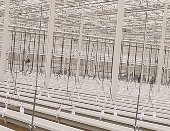 草莓吊掛栽培種植系統(tǒng),通過特定的結(jié)構(gòu)進行栽培槽的吊掛,可在不影響采光和通風的條件下,顯著提高草莓的種植密度和單位溫室面積的產(chǎn)量。配置草莓種植盆,透氣性和排水性好。