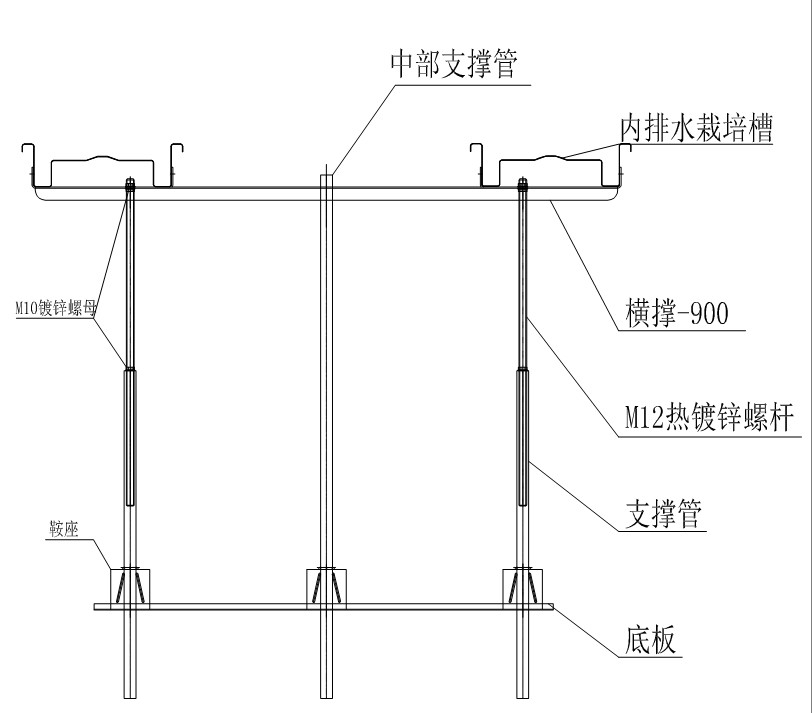 鮮切玫瑰栽培植槽種植系統(tǒng),采用內(nèi)排水式且連續(xù)生產(chǎn)的鍍鋅高耐候聚酯涂層板栽培槽,防腐好,強(qiáng)度高,排水更通暢,無接頭,避免排水槽對接出現(xiàn)漏水現(xiàn)象。采用內(nèi)排水截面,有效阻止玫瑰葉子掉落排水溝引起排水不暢,同時避免陽光直射,導(dǎo)致排水溝滋生青苔綠藻。釆用通長底板支架支撐方式,使支架和軌道連成一個整體,支撐 強(qiáng)度和穩(wěn)固性更好。